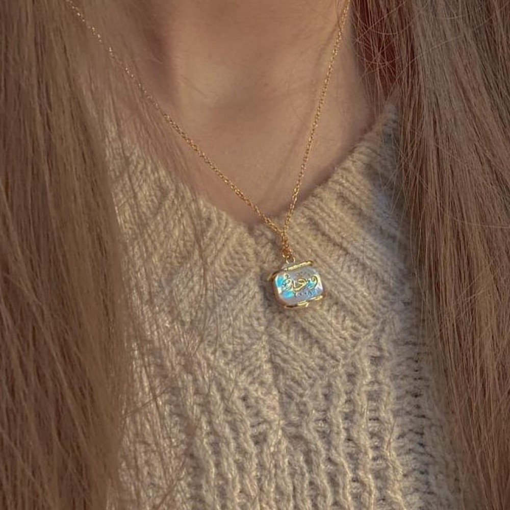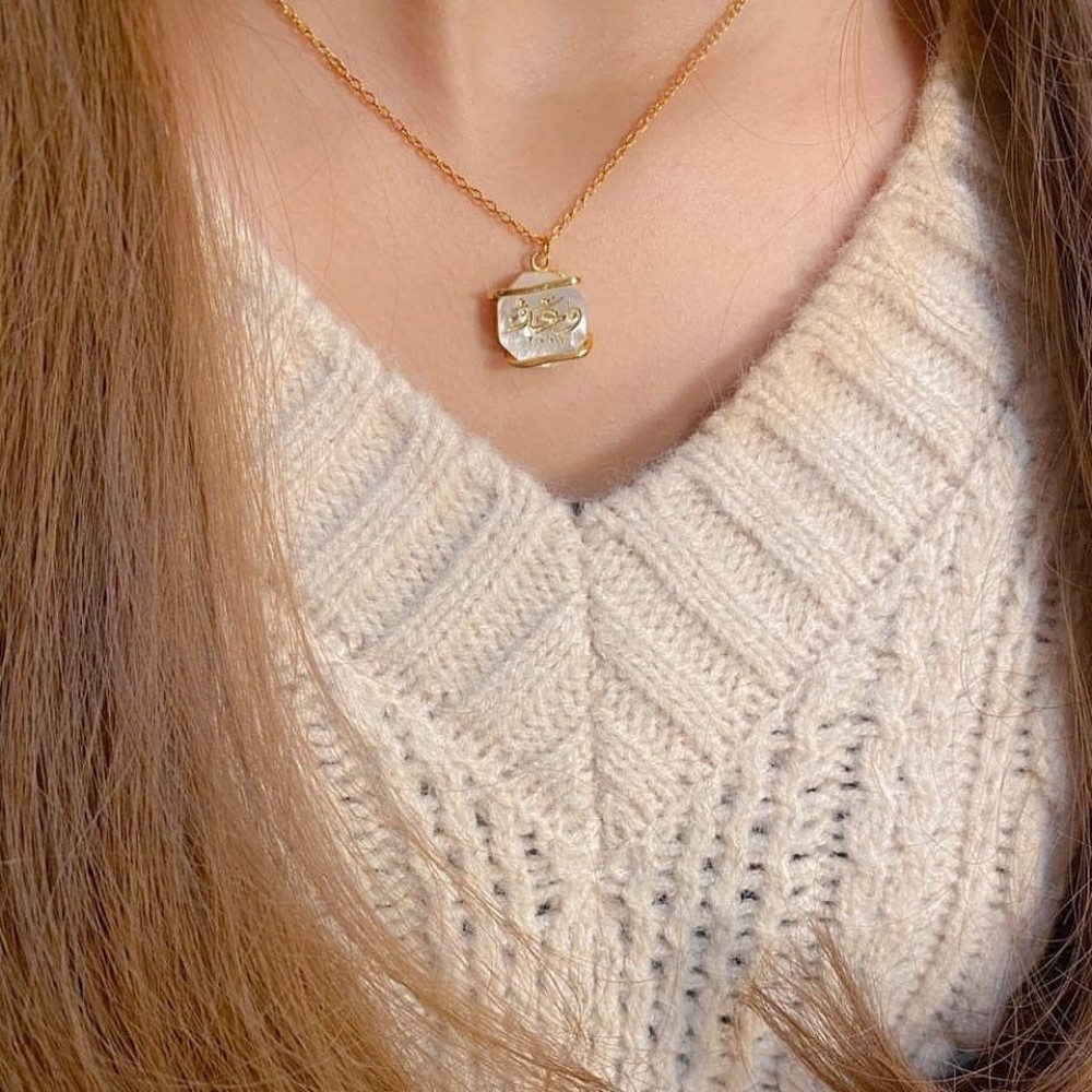 سلسال فضة مع حجر الاونكس مع نحت الاسم