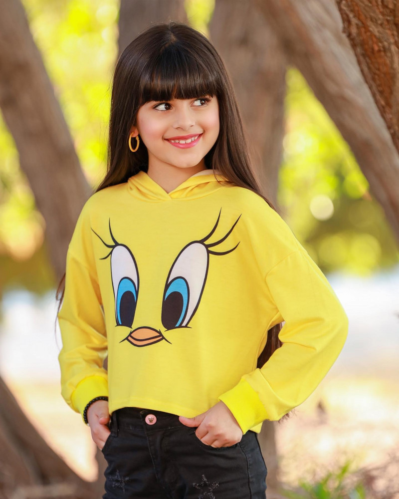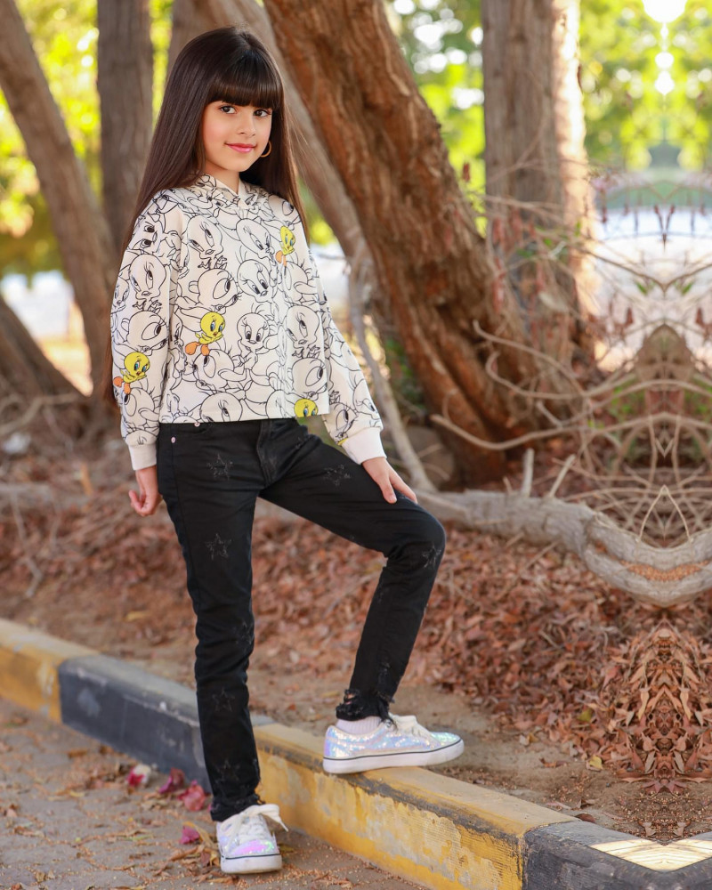 🔹ياقة هودي واكمام طويلة منفوخة .
