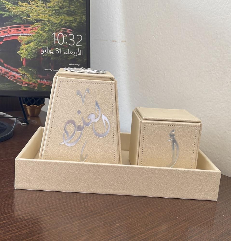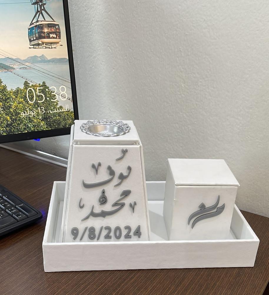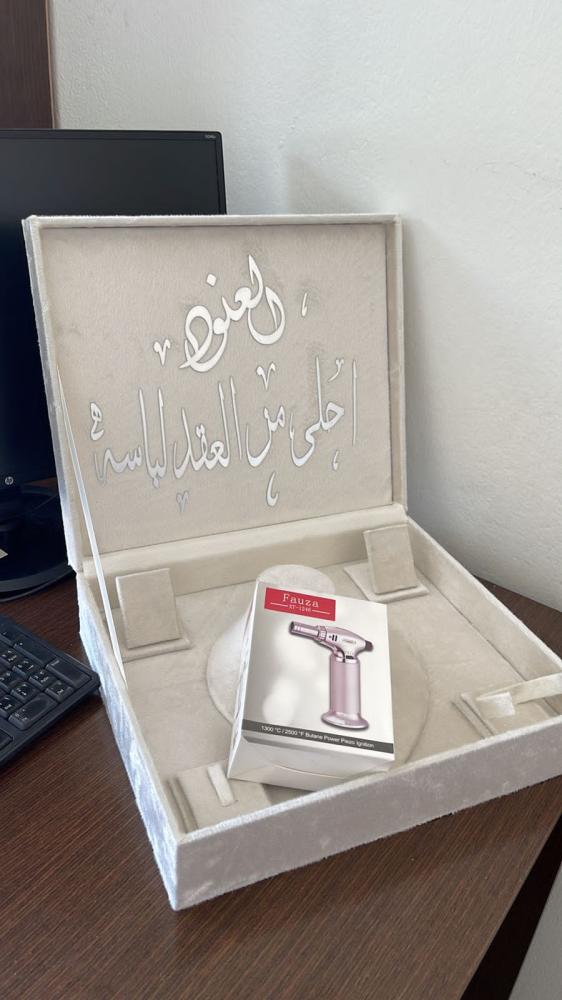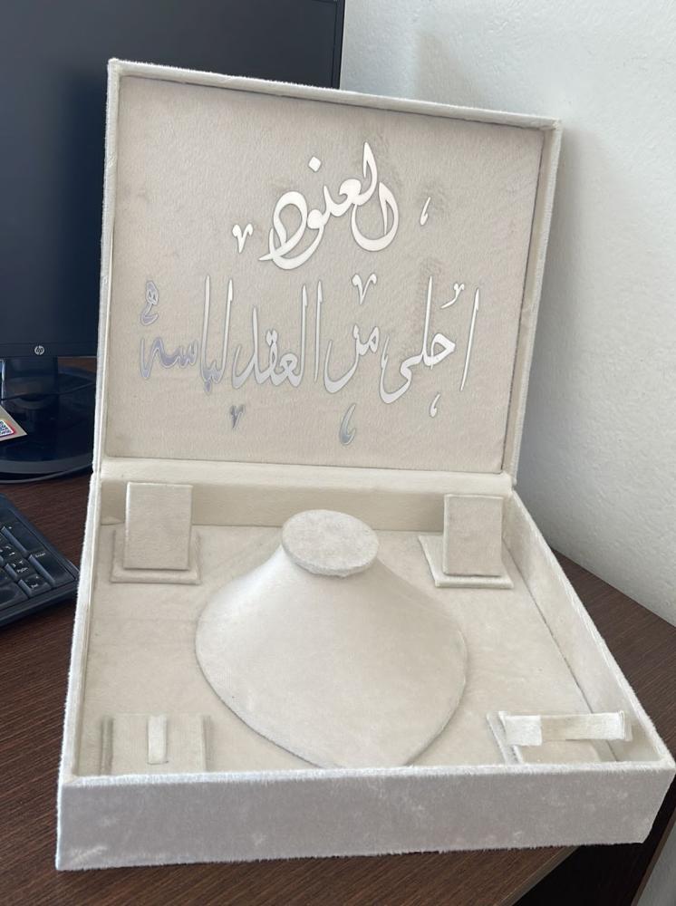 متوفر لون الكتابة باللون الذهبي والفضي والابيض