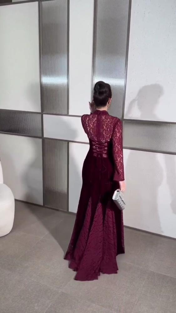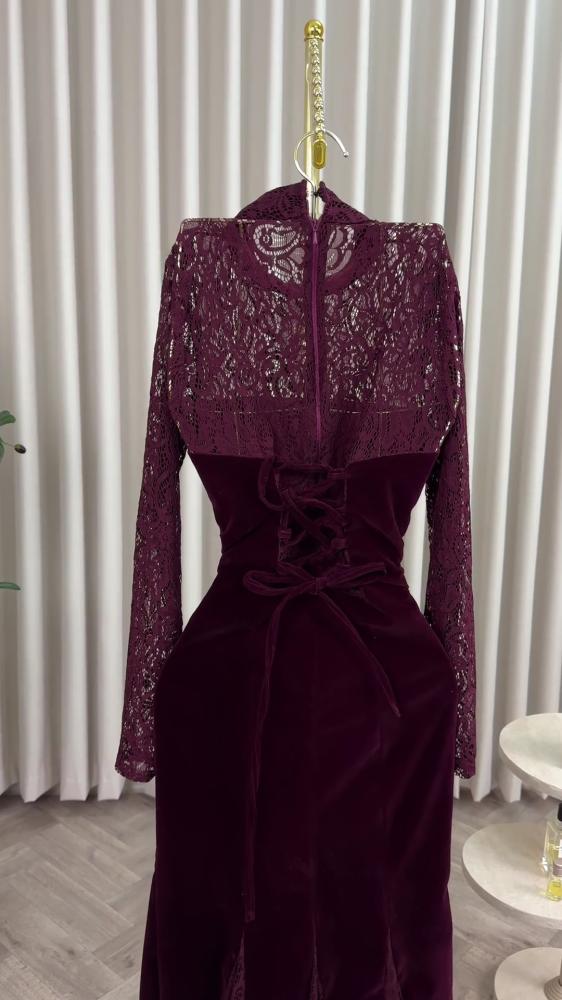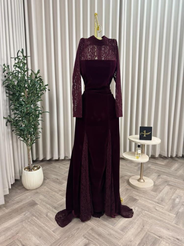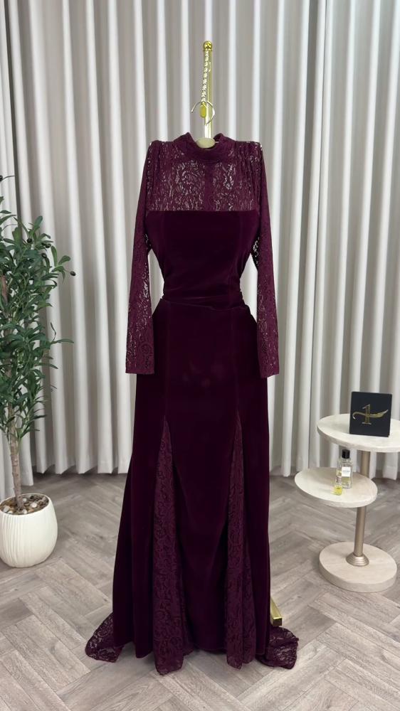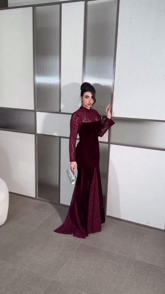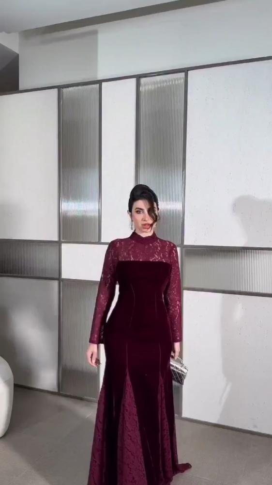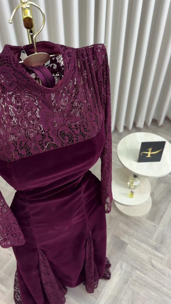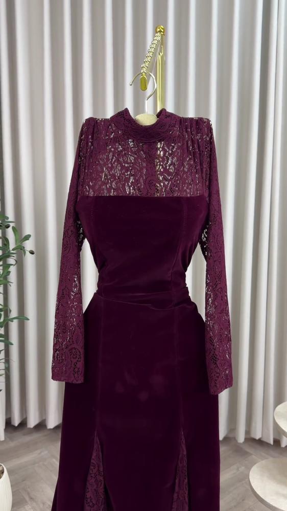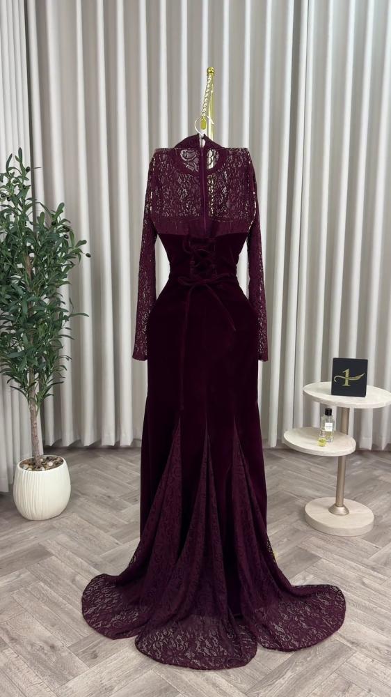 فستان نسائي سهره قماش جوخ مع دانتيل