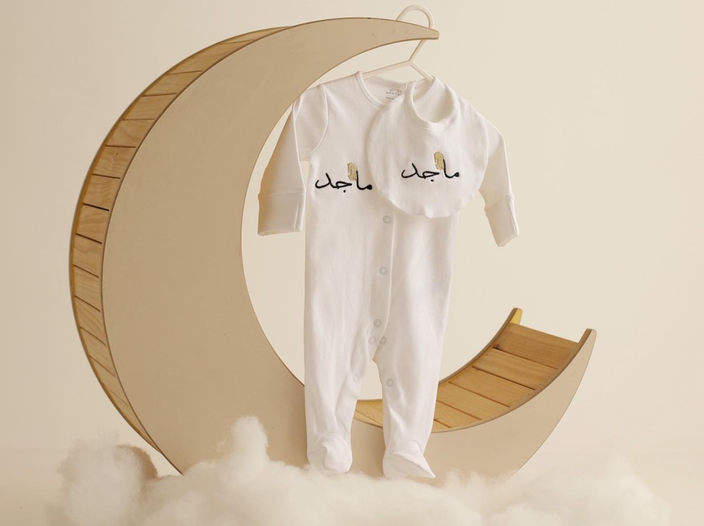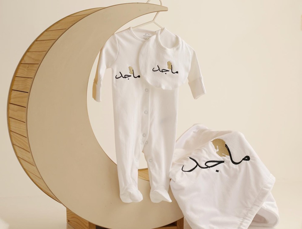 طقم مواليد بالاسم تفصيل وتطريز حسب الطلب