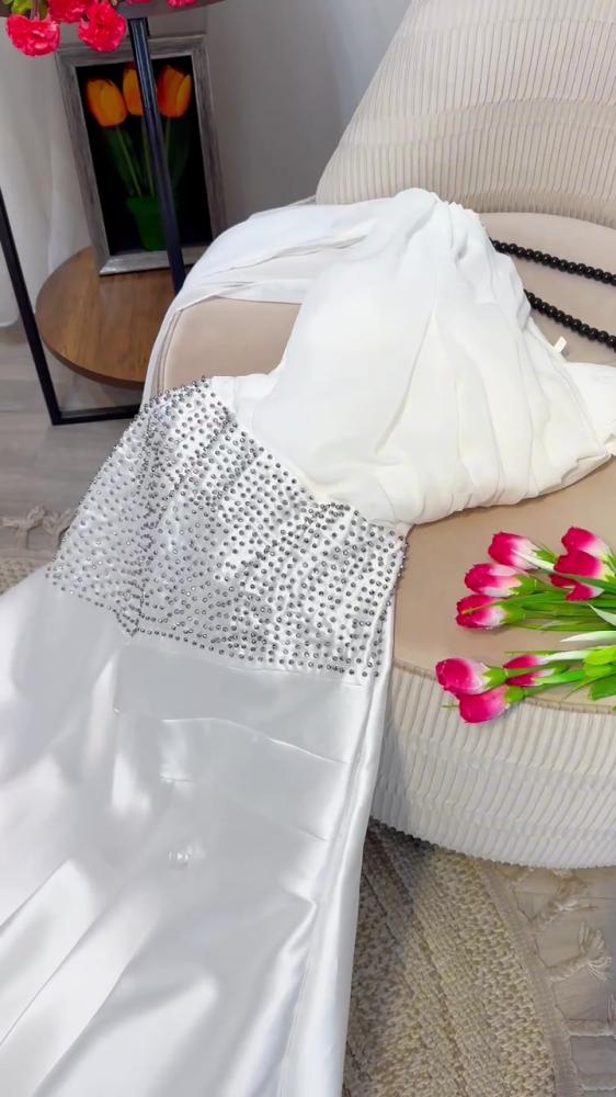الخامه /تفته ميكادو + شيفون جورجيت + تطريز يدوي كرستال