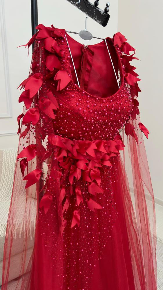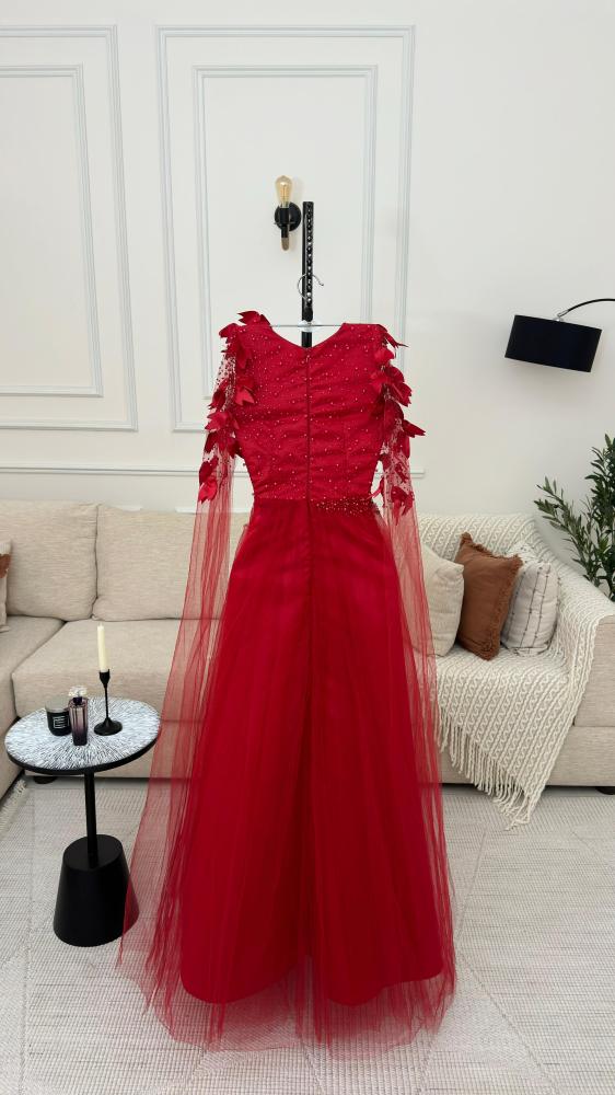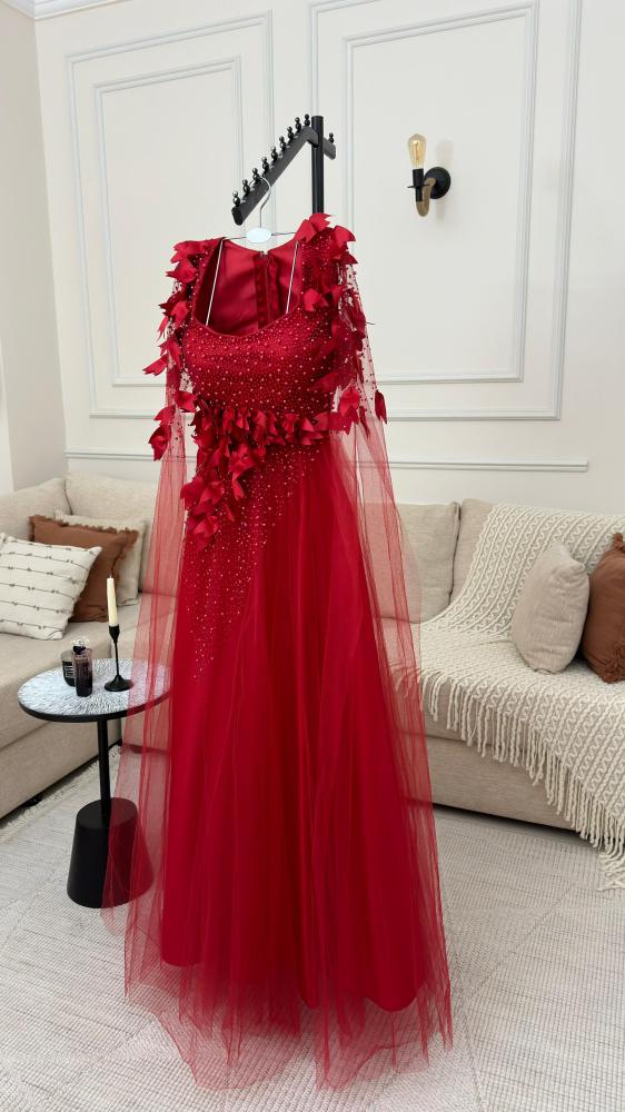 فستان سهره نسائي قماش تفته سيلا مع تل