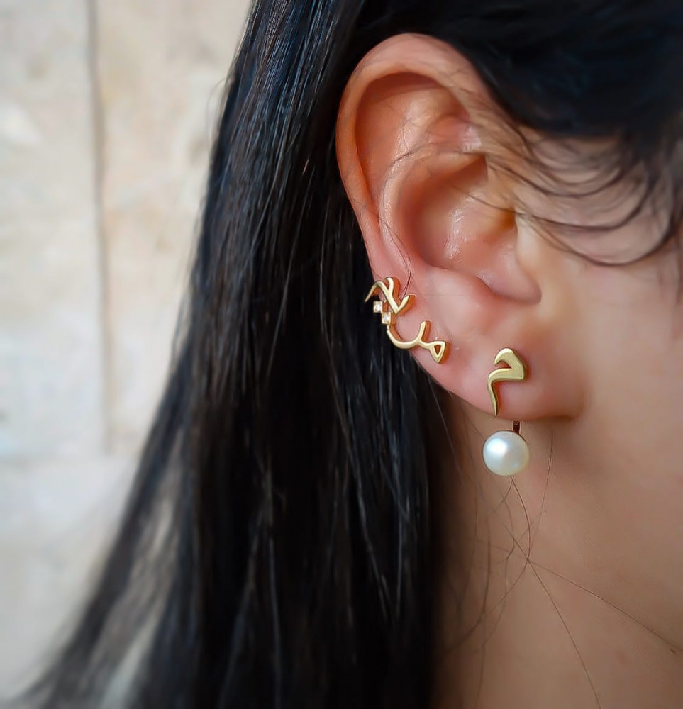 حلقان بتصميم الاسم او الحرف مع لؤلؤ او زركون