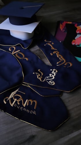 وشاح تخرج كريب تفته ياباني تفصيل وتطريز حسب الطلب