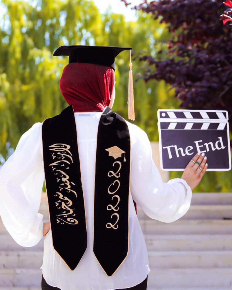 وشاح تخرج كريب او مخمل بالاسم والعبارة وسنة التخرج وشعار الدفعة حسب الطلب