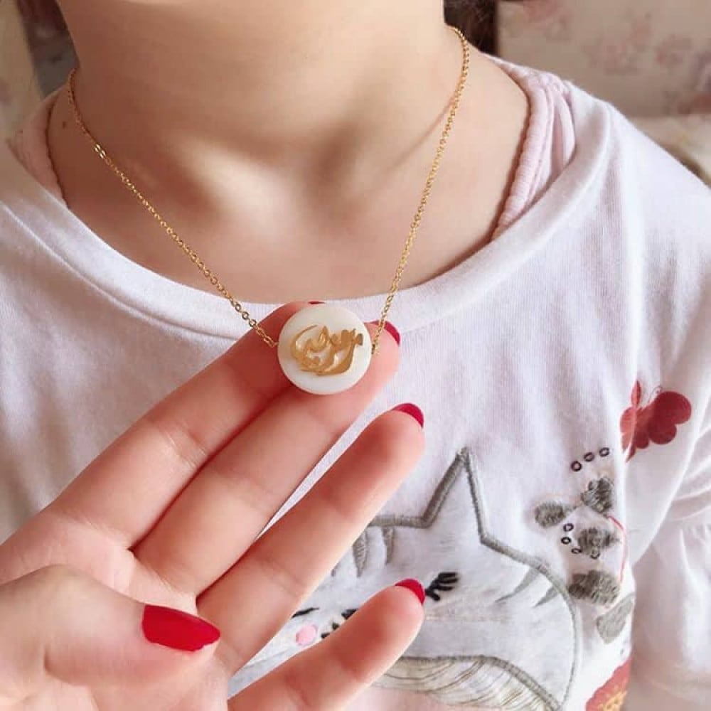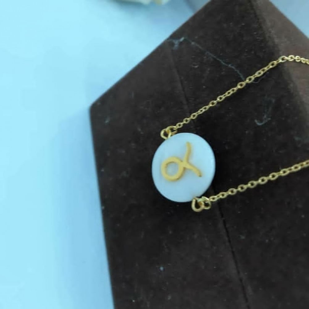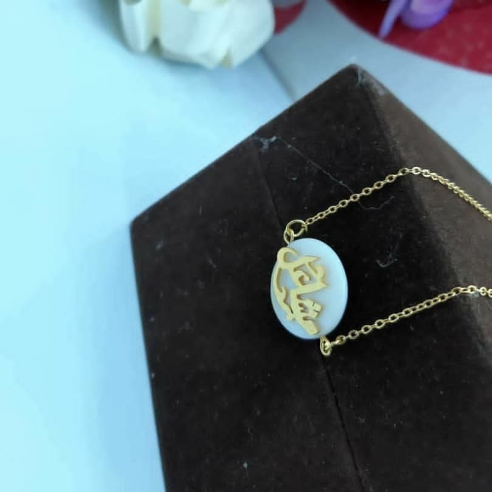 سلسلة بتصميم الاسم مع صدف افريقي ومع حجر كريم حسب الطلب اسم وبرج او حرف وبرج