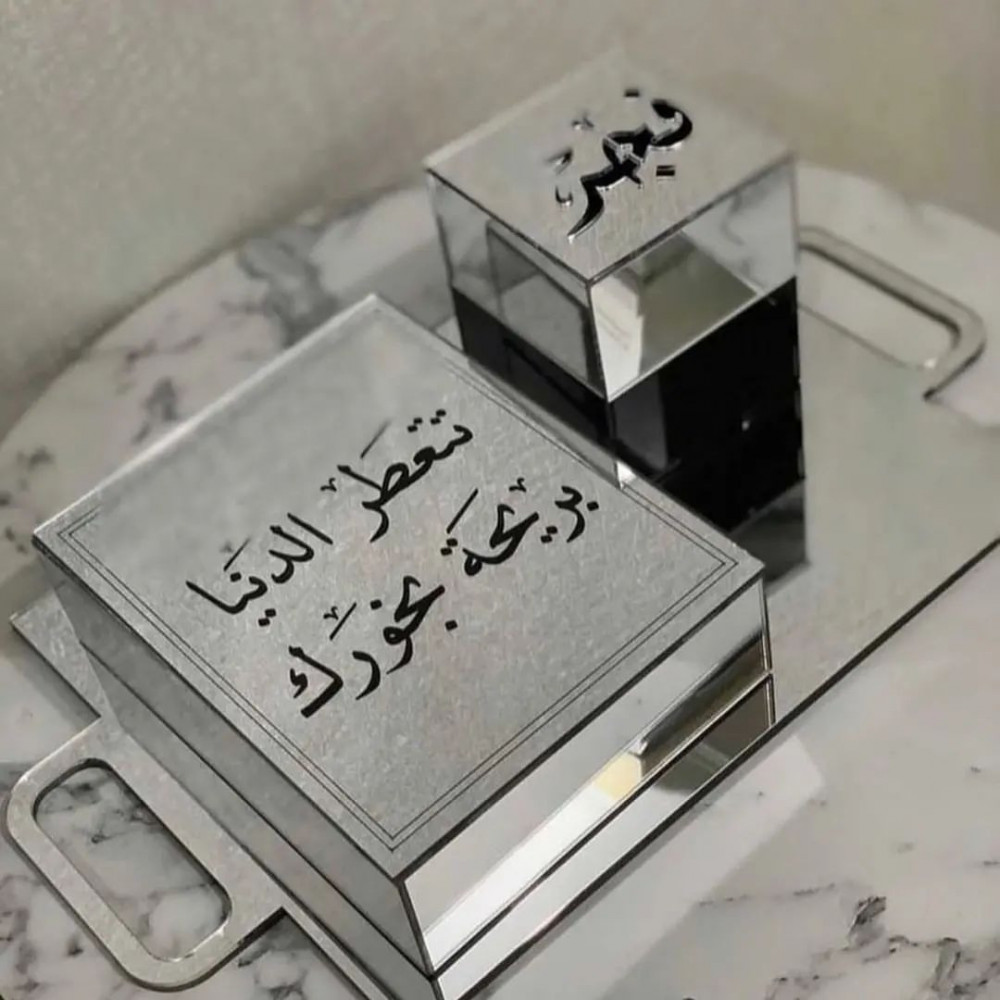 مبخرة وصينية واستاند وحامل مبخرة اكريلك بالاسم حسب الطلب
