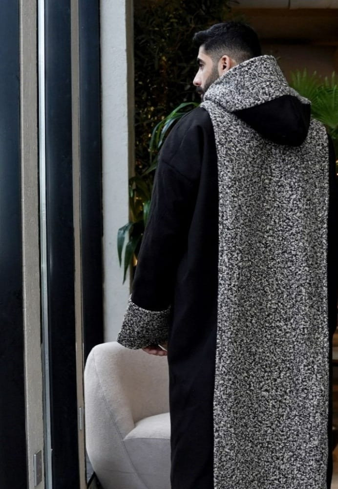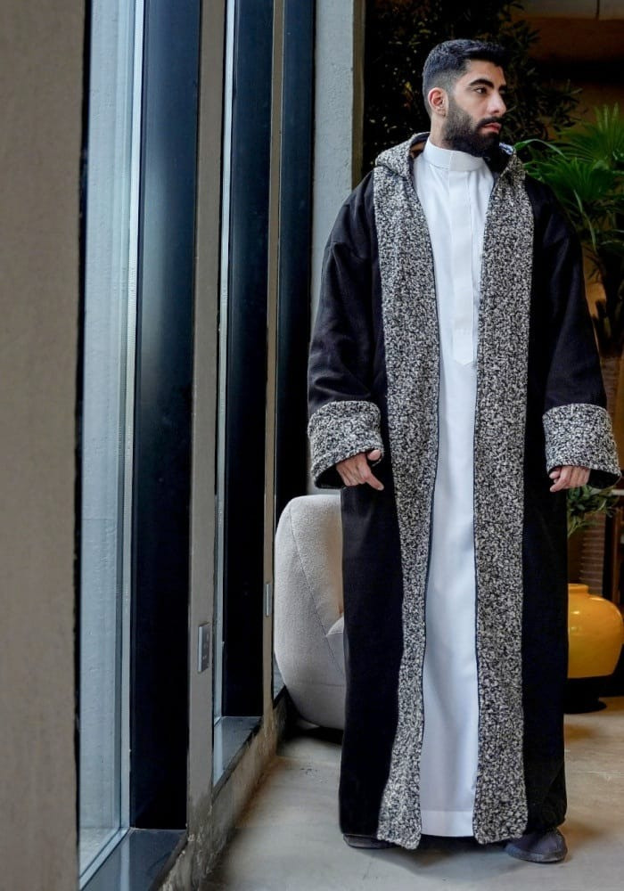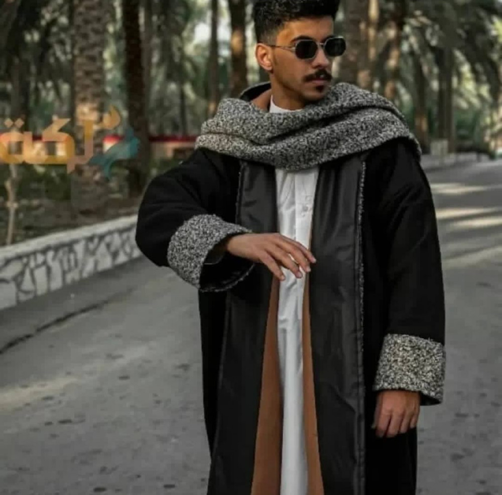 فرو شتوي رجالي جوخ دبل فيس باطراف جلد وجهين في اللبس
