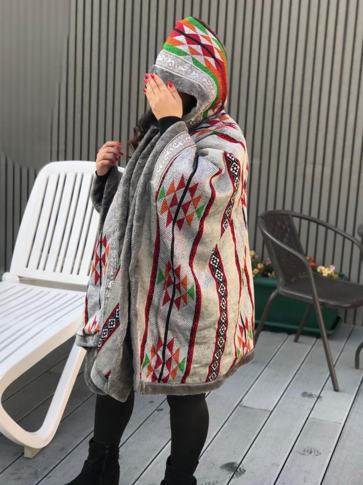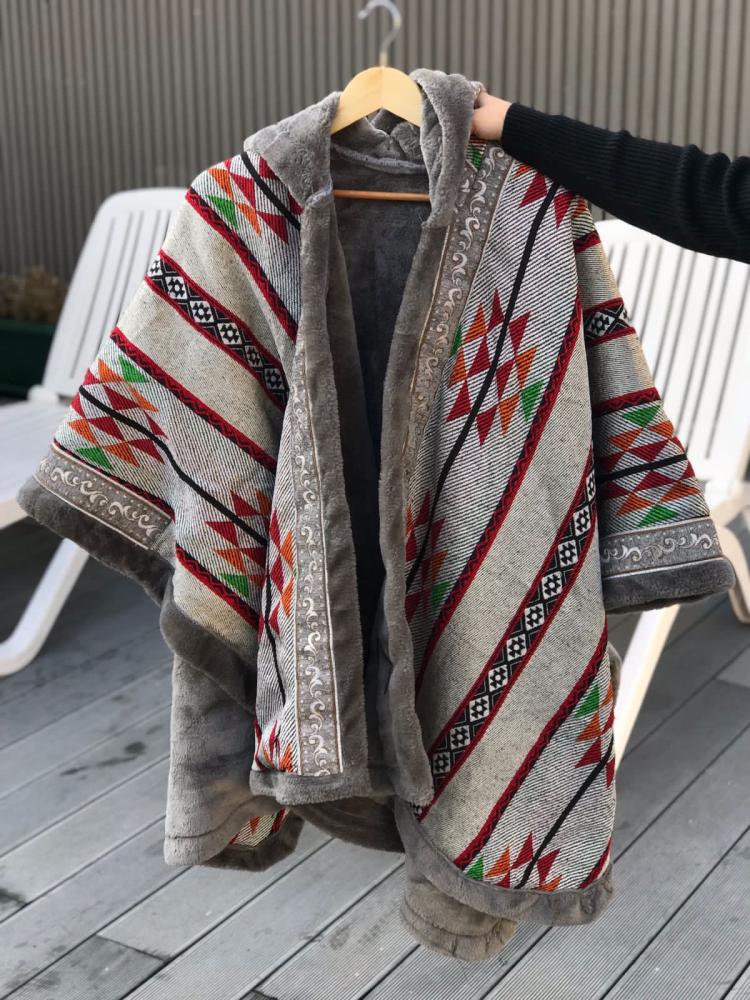 شال شتوي نسائي جوخ مع اطراف سدو مع طاقية بالاسم حسب الطلب