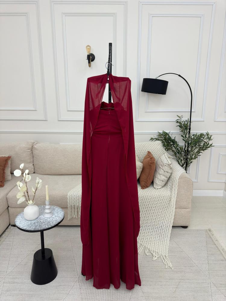 فستان نسائي قماش لكرا كريب ستريتش مع شيفون جورجيت