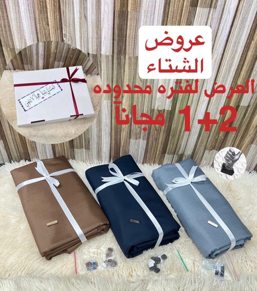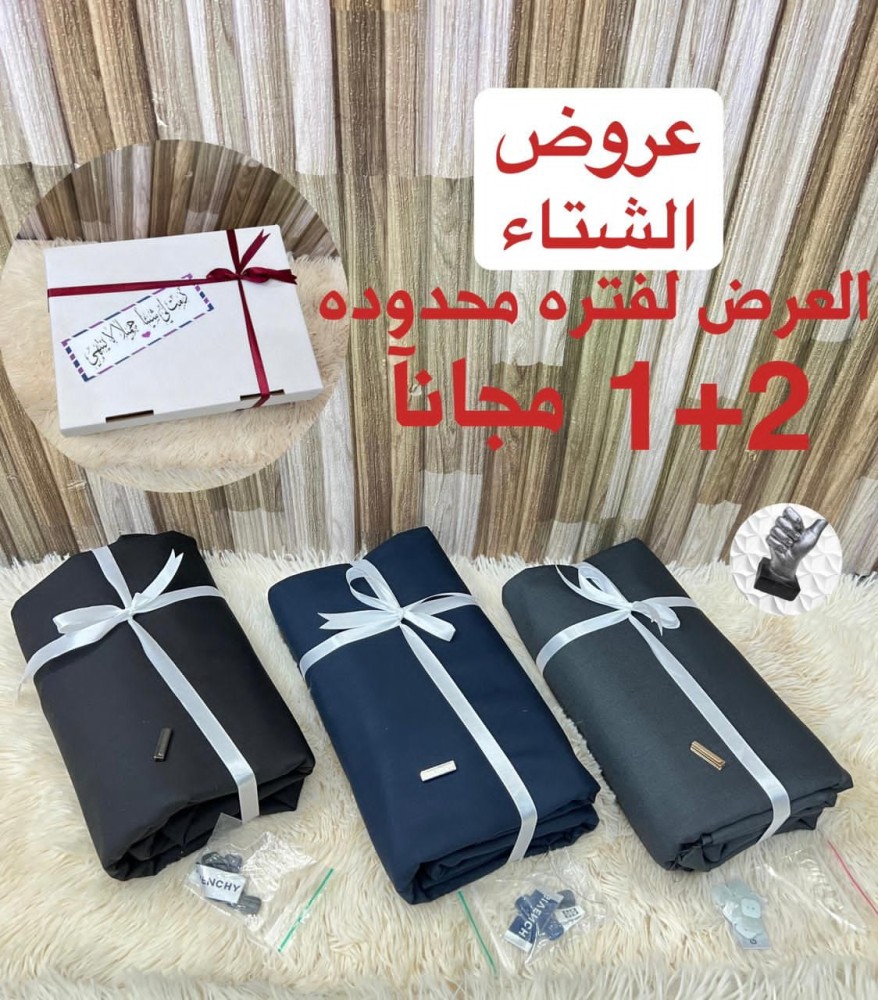 🎬 🕊 *عررررض شتوي🔥*🕊 اشتري 2 واحصل على الثالث مجآنآ 🕊* اقمشه رجالي تصميم ماركة جفنشي* 🕊*شتوي خامه ممتازه * 🕊*ثمانيه زرارات جفنشي مع لوقو جيب ورقبه* 🕊*علامة جيب الثوب * 🕊*بوكس فخم نفس الصوره * *عبارة حسب الطلب * ✅✅✅✅✅✅✅✅✅✅✅ 🔥 *كل هذا فقط ب (290)ريال*🔥 العرض لفتره محدوده