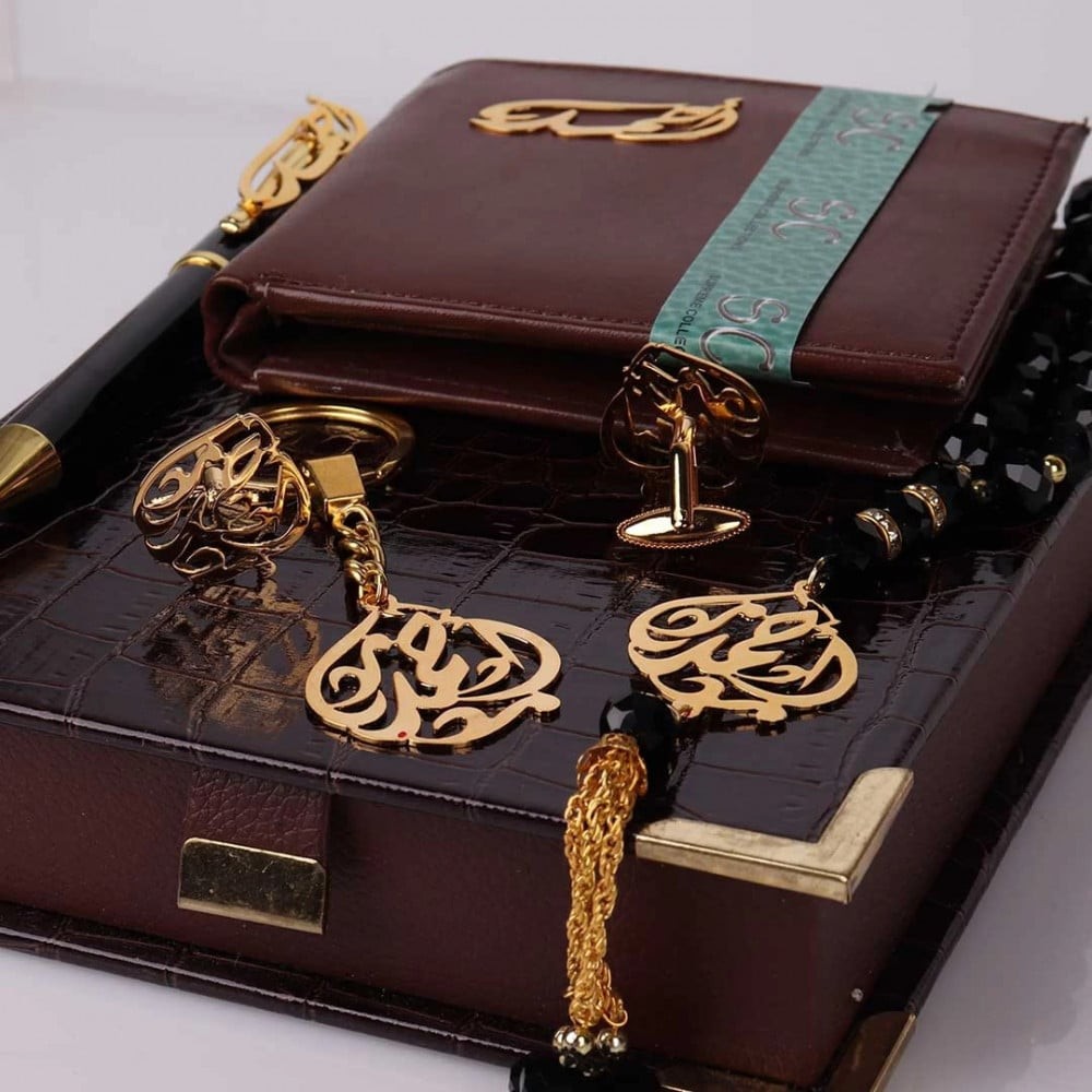 طقم رجالي مثالي مكون من 6 قطع خلابة (قلم، سبحة، ميدالية، زوجين من الكبك، بوك) بحيث يكون أروع هدية يقدمها العميل للشخص الذي يحبه، فالطقم مصمم بعناية فائقة لينال إعجاب كافة عملاؤنا، والطقم له موديلات متنوعة يستطيع أن يختار العميل منها ما يناسبه ويناسب أصدقائه.