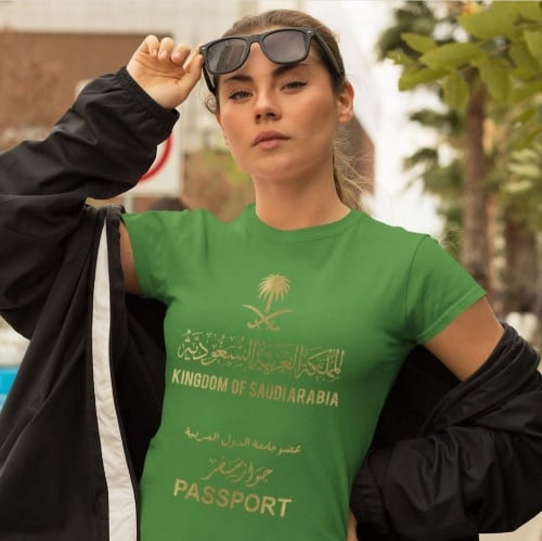 بلوزة اليوم الوطني بتصميم هوية اليوم الوطني والاسم حسب الطلب نسائي