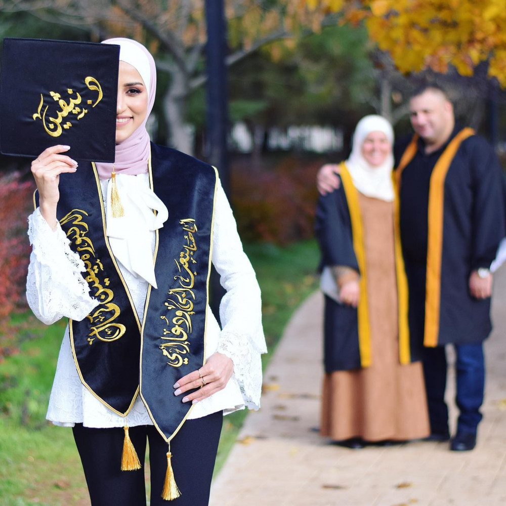 وشاح تخرج كريب تفته ياباني تفصيل وتطريز حسب الطلب