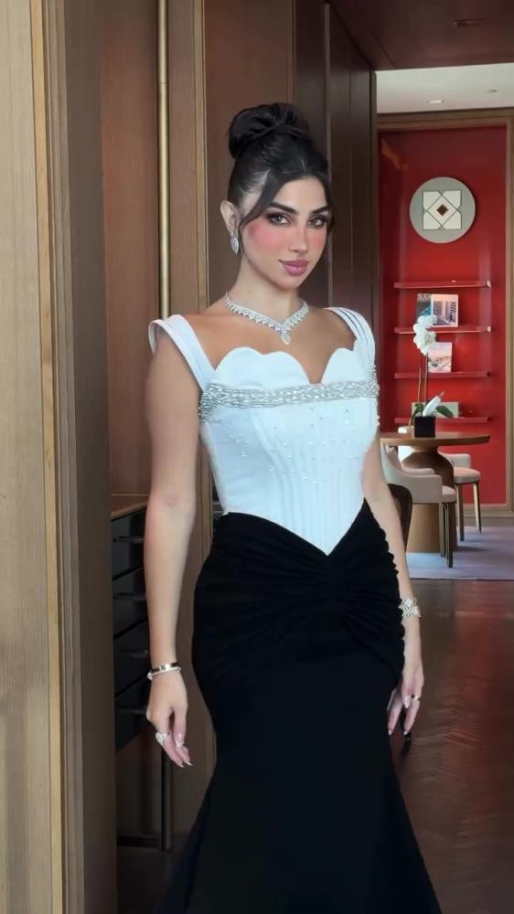 فستان نسائي سهره قماش كريب ستريتش مع باربي