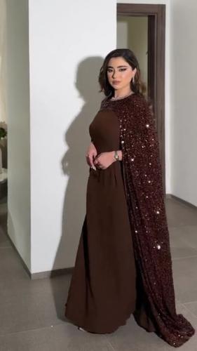 فستان نسائي سهره قماش كريب استرتش مع شيفون جورجيت