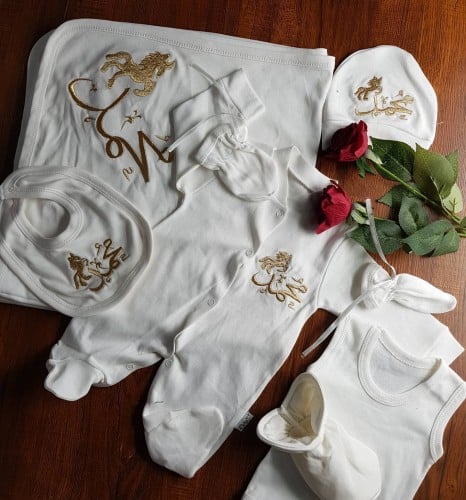 اطقم مواليد بالاسم مكون من طقم ملابس مولود بالاسم حسب الطلب