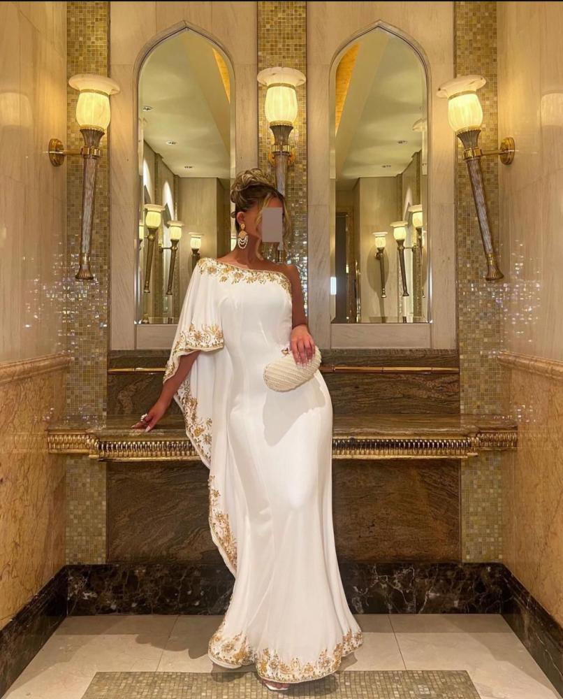 فستان نسائي اوف وايت تطريز يدوي قماش باربي