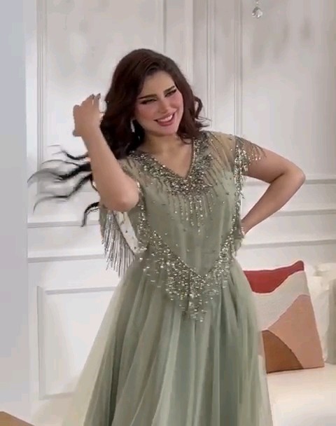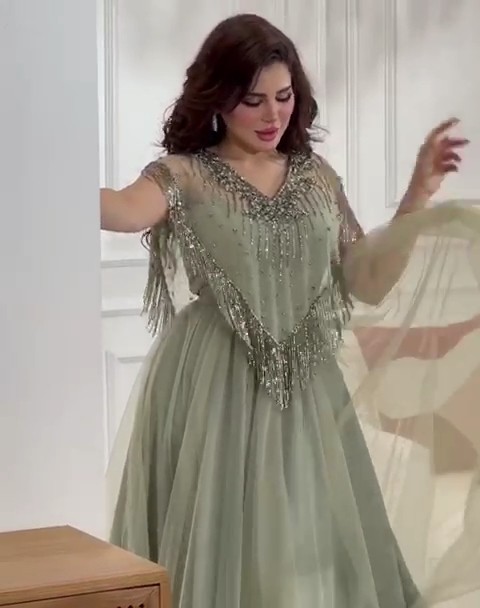 فساتين نسائي سهرات تل تفته ستريتش ناعم