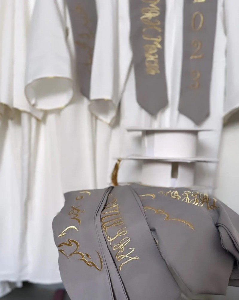 تفصيل العباية مع تطريز الوشاح والقبعة حسب الطلب