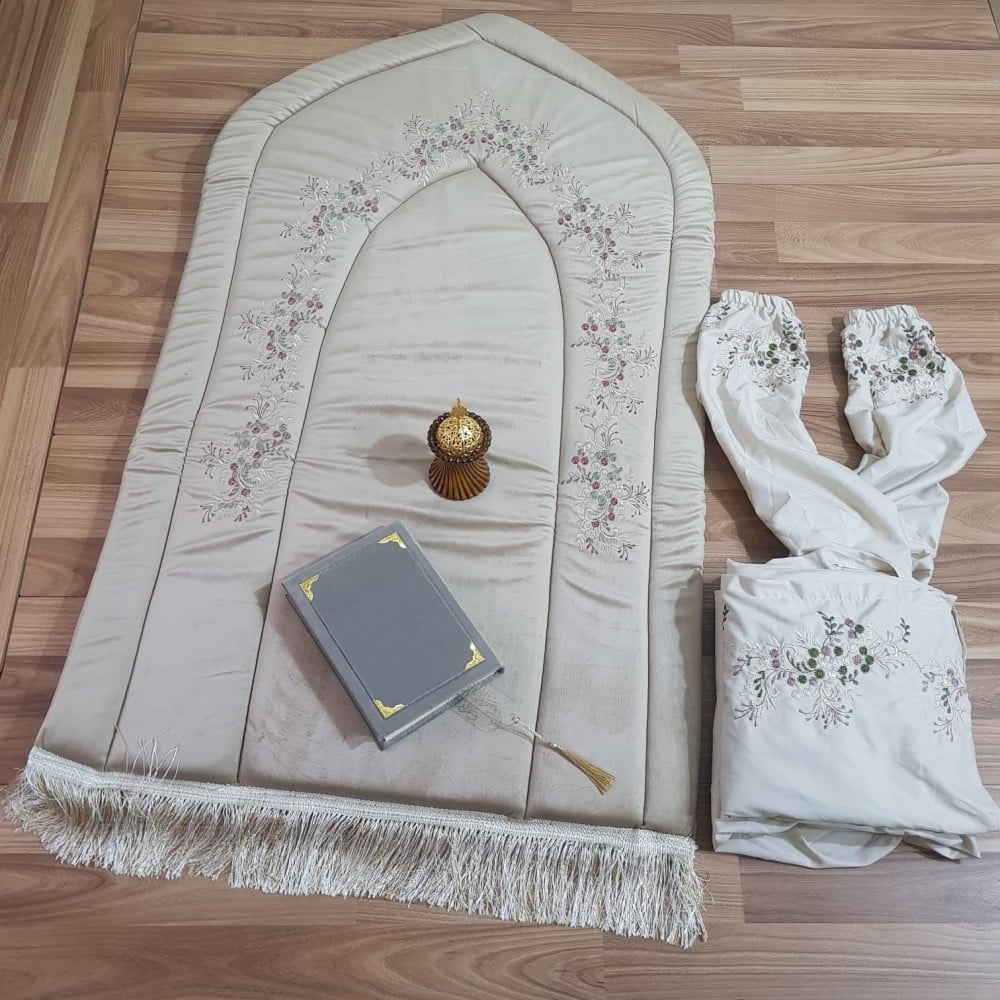 طقم صلاة فخم مكون من ( سجادة مبطنه بإسفنج سميك ومريح + احرام صلاة مطرز بأكمام 💫