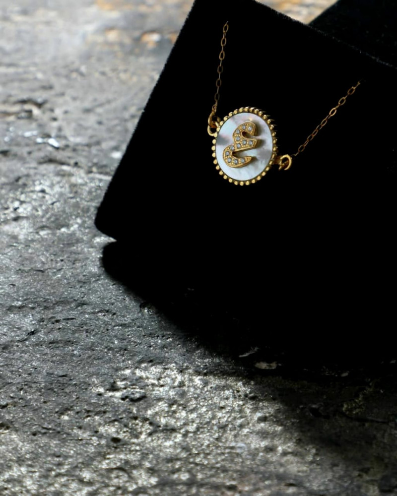اسوارة وسلسلة فضة خالص بتصميم حسب الطلب مع لؤلؤ طبيعي ناصع او مع حجر كريم اختاري حرف برج اسم