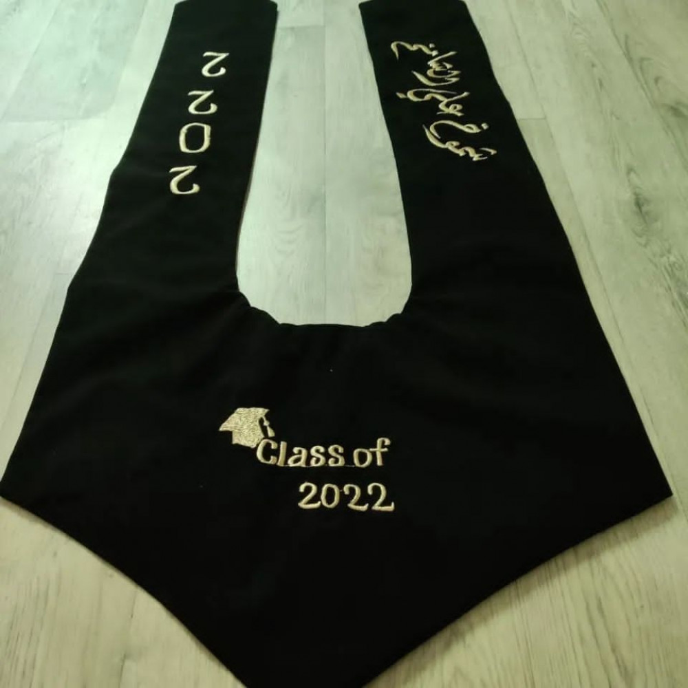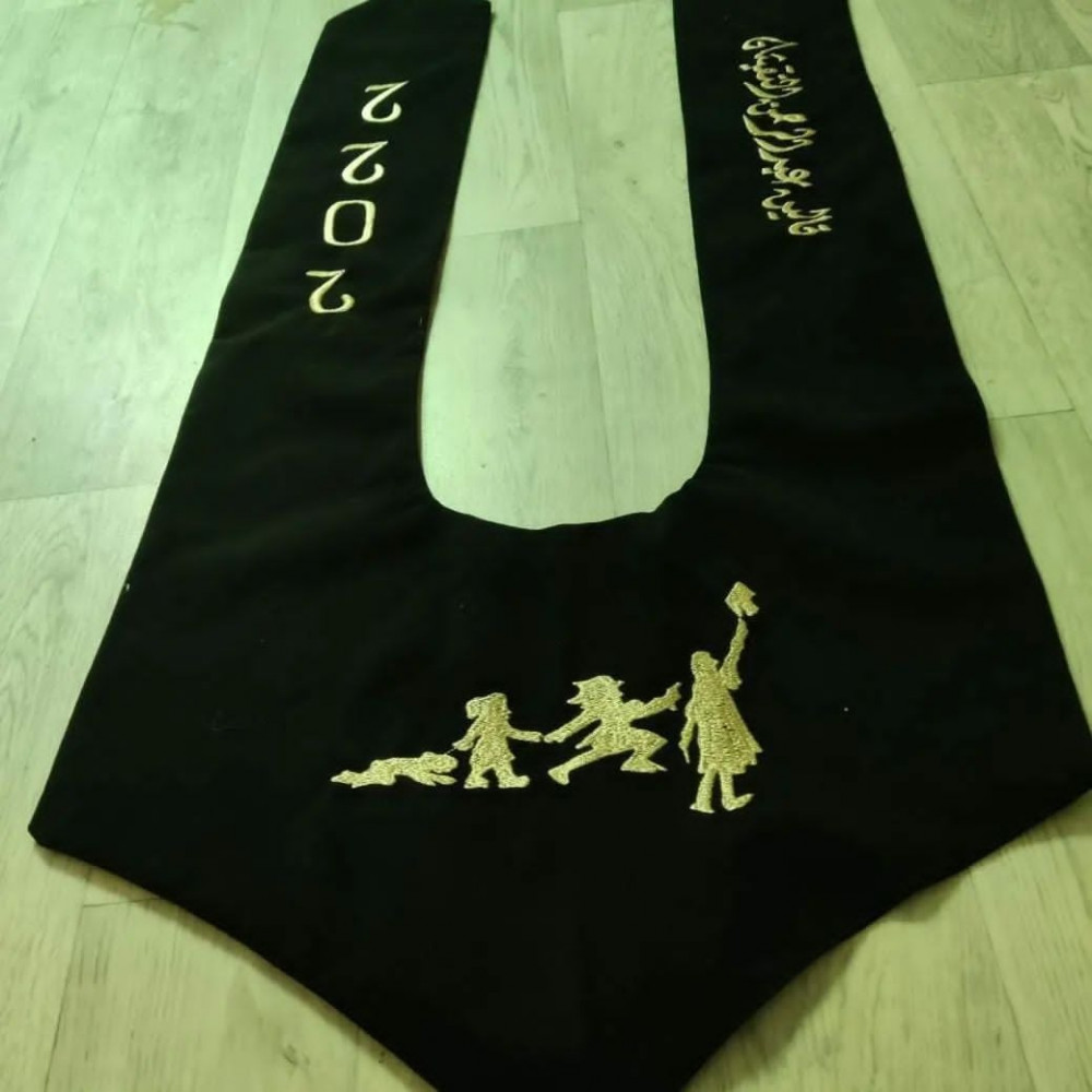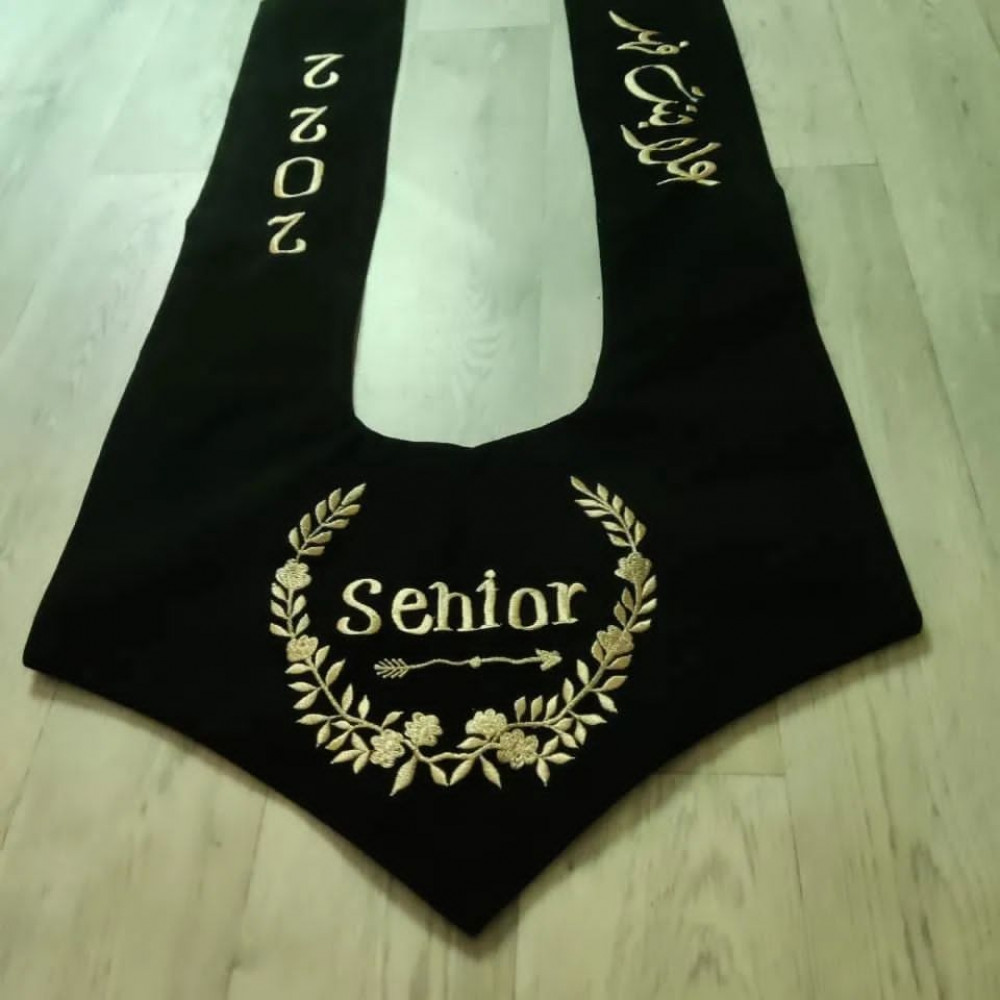 وشاح تخرج كريب تفته ياباني تفصيل وتطريز حسب الطلب