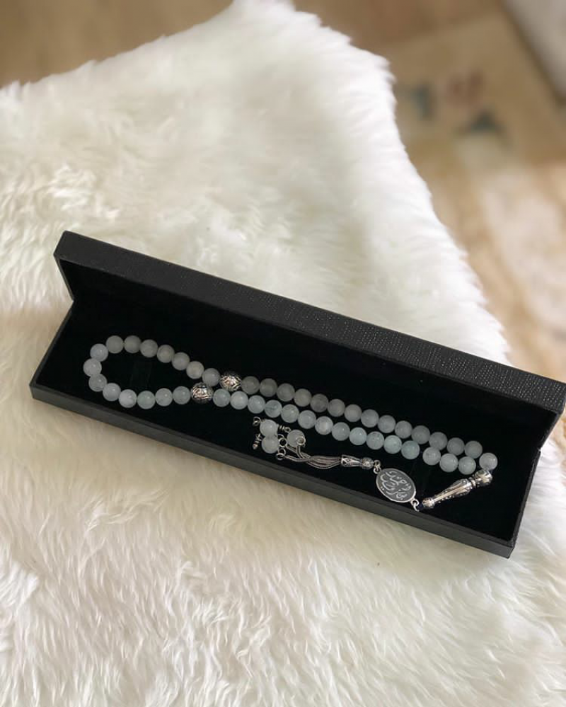 سبحه فضة خالص مع حجر الاونكس الكريم مع نحت اسمك على حجر اونكس