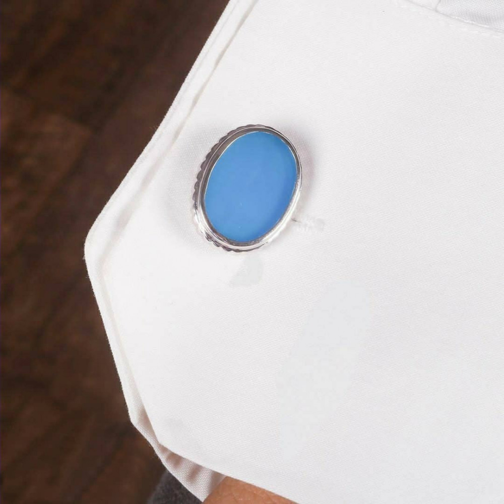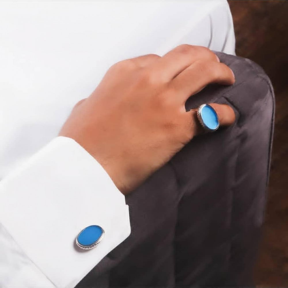 كبك رجالي فضة خالص مع حجر كريم حسب الطلب