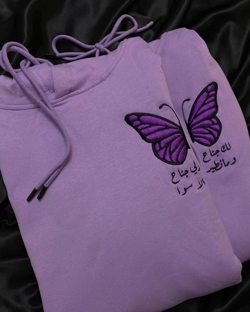 🔹ياقة هودي واكمام طويلة منفوخة .