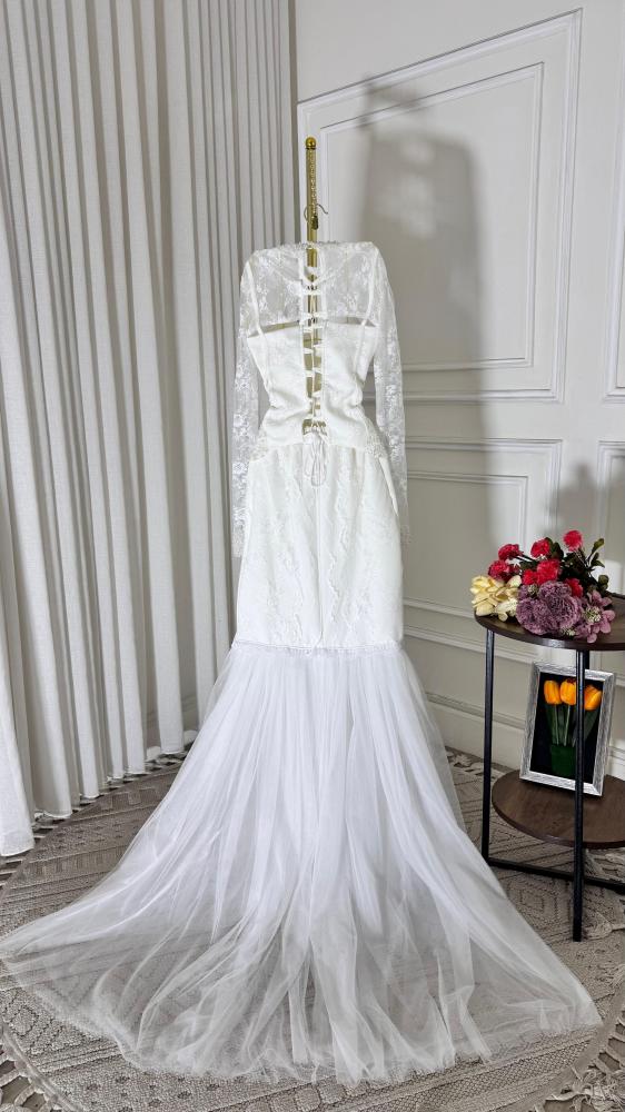 فستان سهره قماش تل مع دانتيل مع شيفون