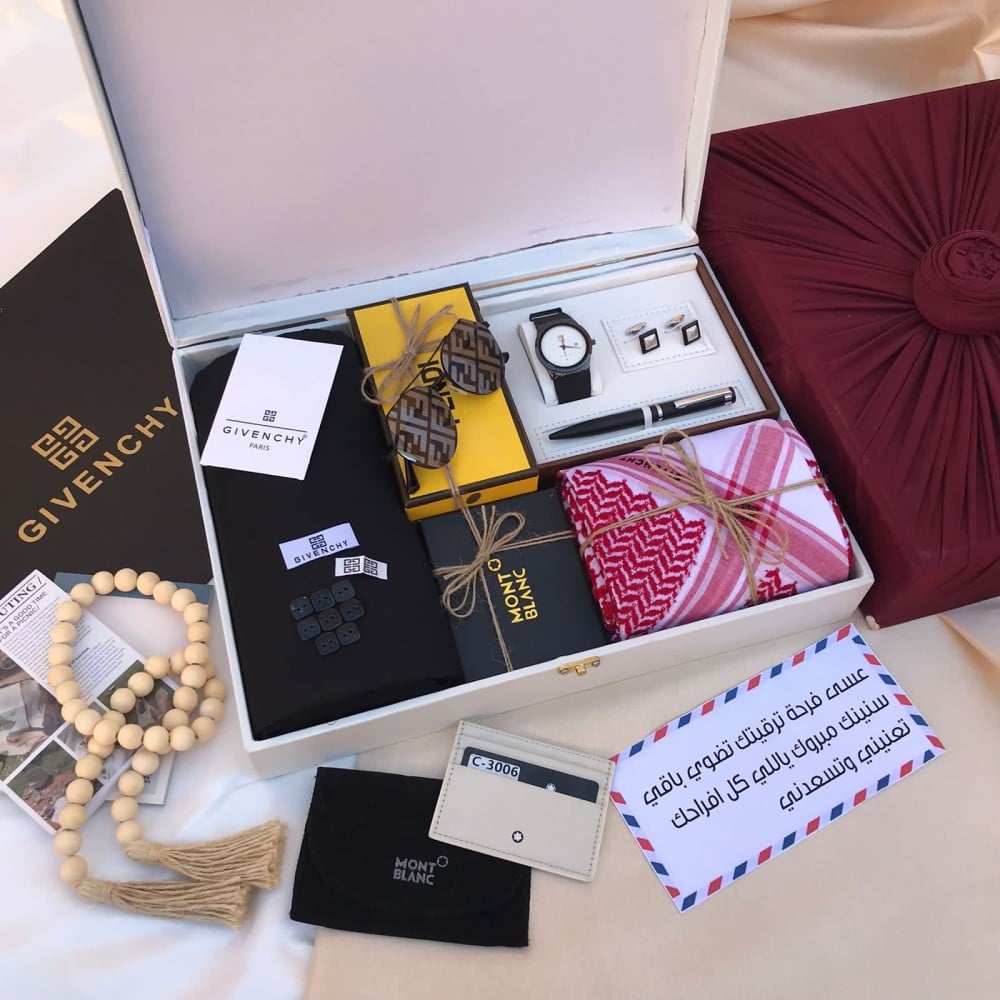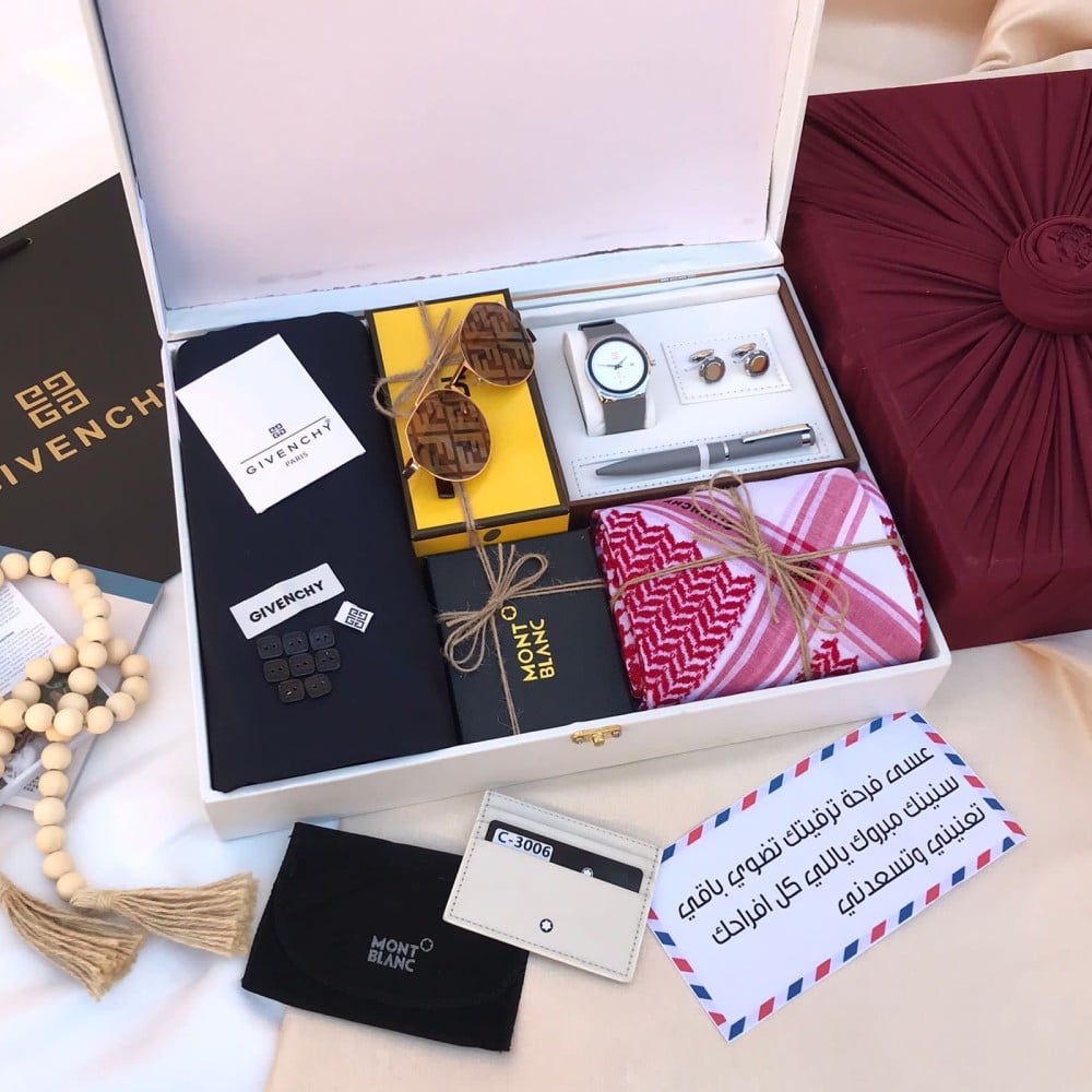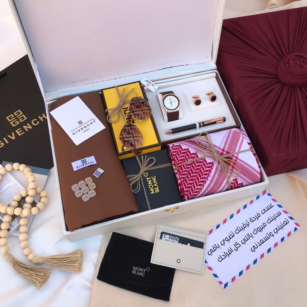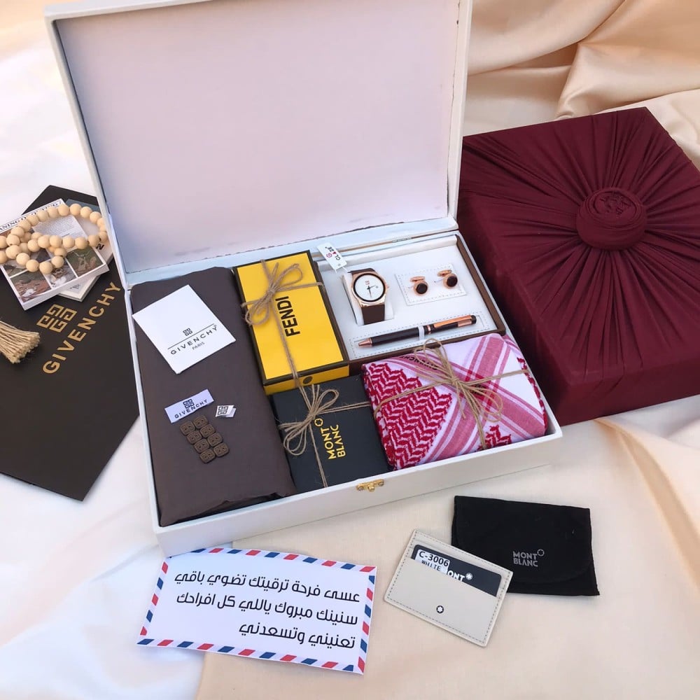 جديدنا😍🎁🛍️ طقم رجالي 👱🏼‍♂️ 🤏🏻قماش جفنشي شتوي الخامه جدًا ممتازه المقياس 3.5 في عرضين 🤏🏻شماغ احمر جفنشي المقاسات 55/58/60 مع طقم ساعه +كبك +قلم🎁 نظارة فندي رجالي مع ملحقاتها 🎁 مع بوك بطايق مونت بلانك 👝 مصمم على شكل هديه🎁🛍️ مع التنسيق والورد 🎁🌹 مع عباره من اختيارك 💌 شامل البكس نفس الصوره🎁 *السعر 390 ﷼*🌹