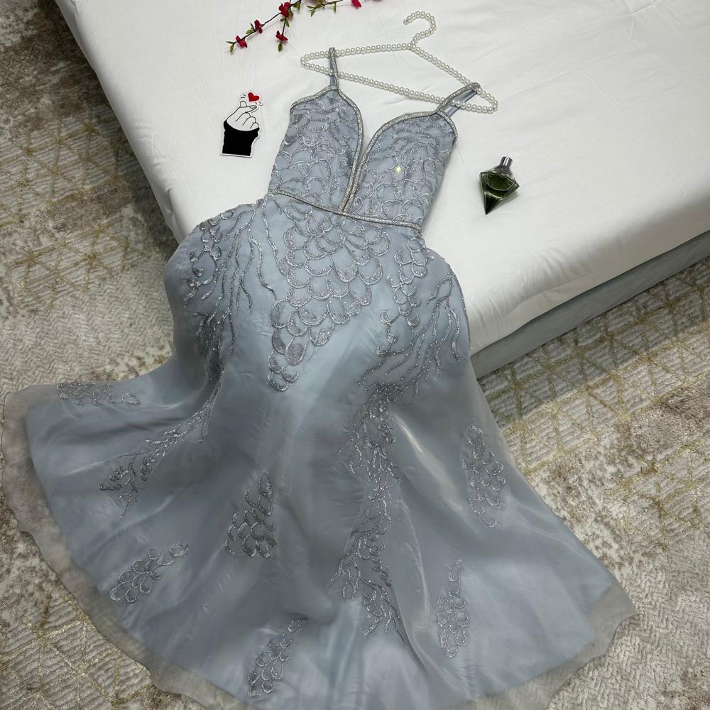 فستان نسائي شيفون مع جورجيت تطريز كمبيوتر