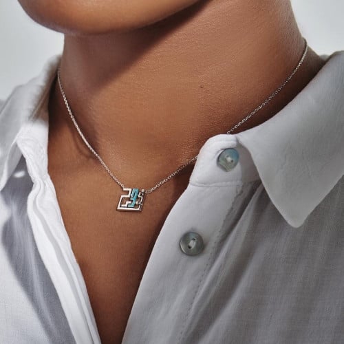 سلسال بتصميم احرف الاسم بلونين مع الزركون حسب الطلب