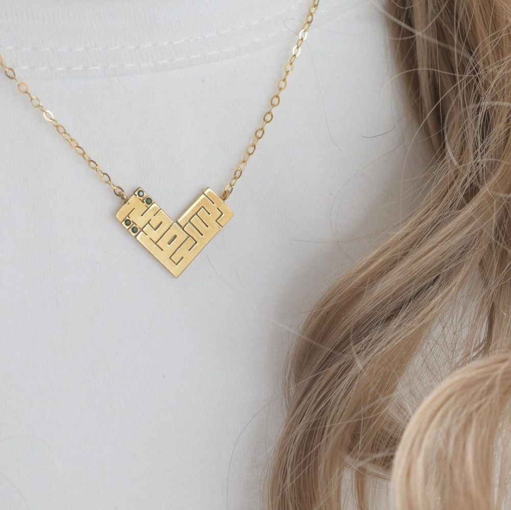 سلسال السيفين ونخلة مع حجر الملاكايت الاخضر