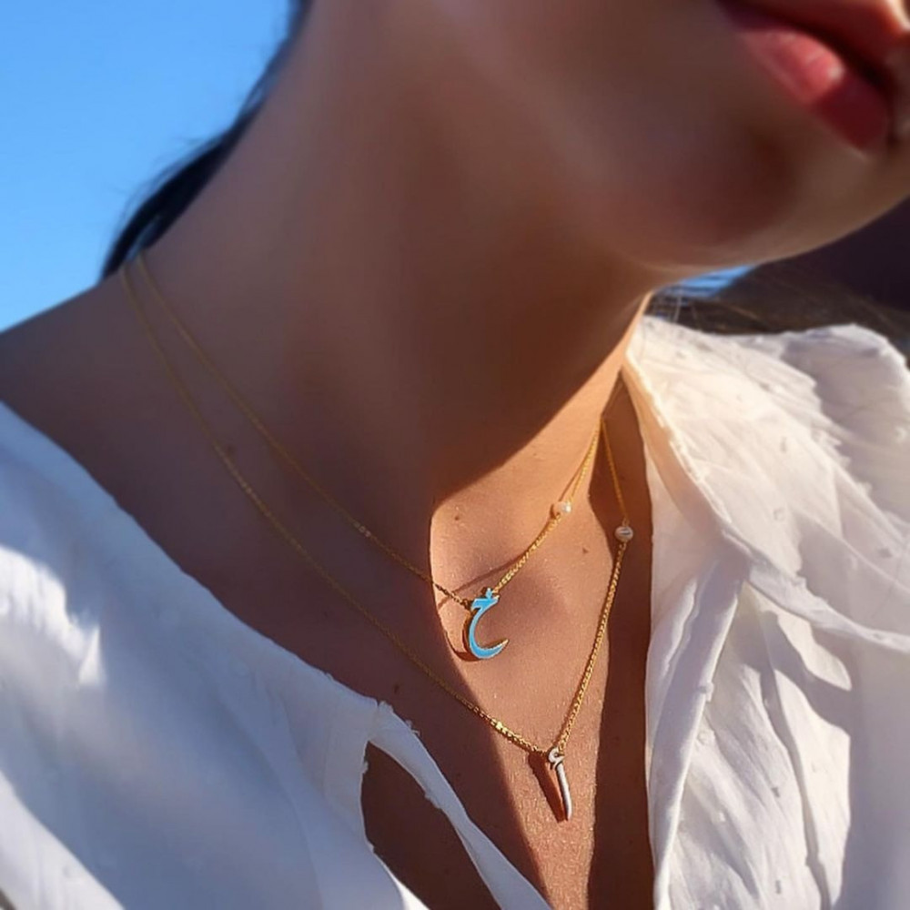 سلسال اسمين مع حجر اخضر بتصميم حسب الطلب