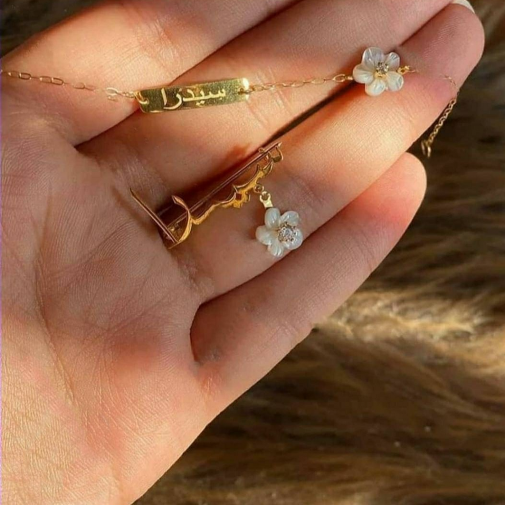 بروش بتصميم الاسم والعبارة حسب الطلب مع الزركون