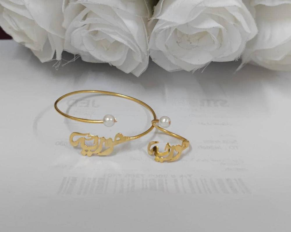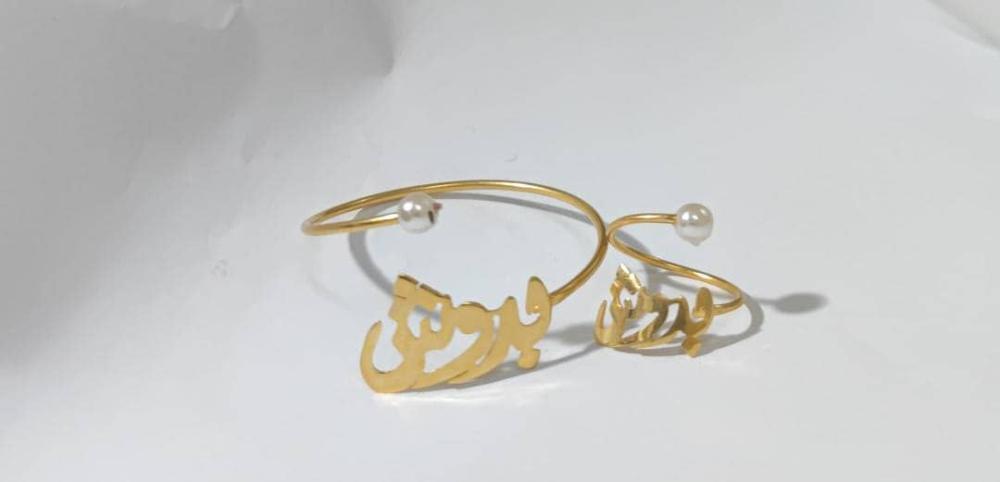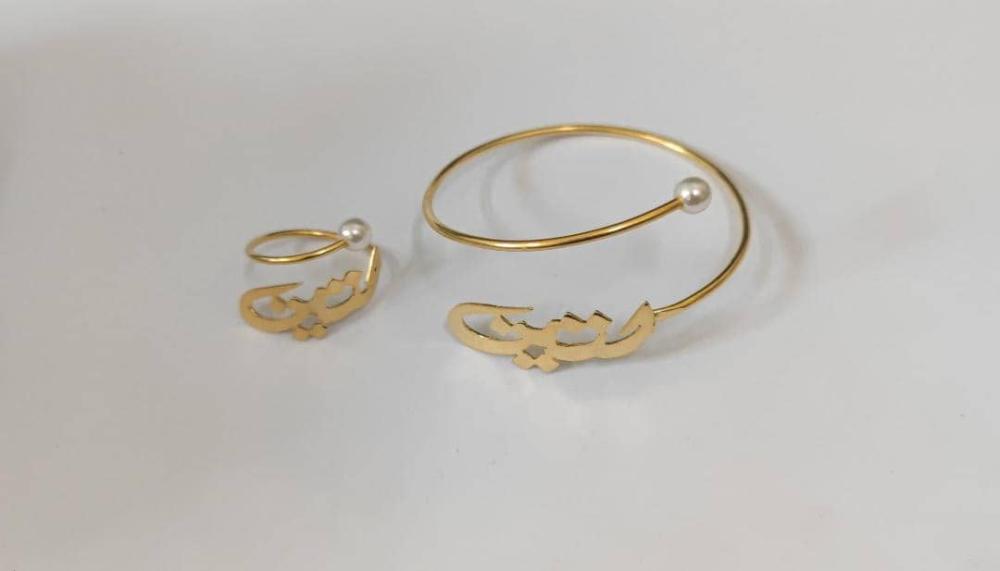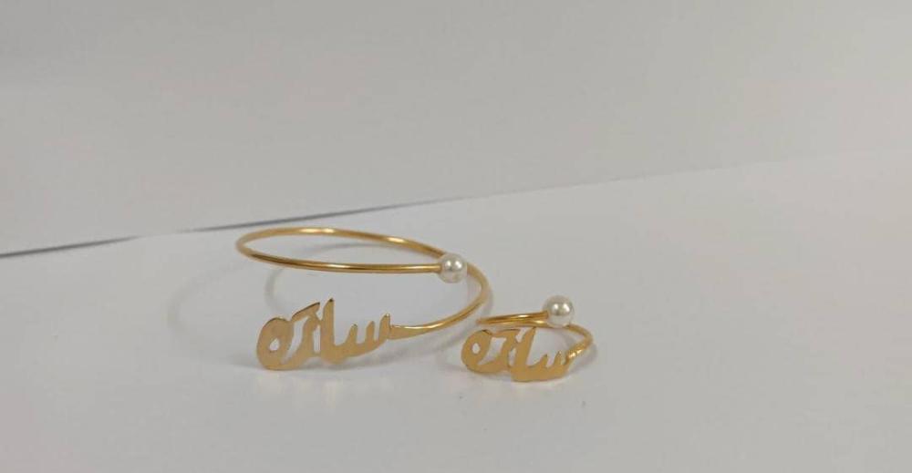 خاتم واسوارة بالاسم والتاريخ والعبارة والحرف المخصص - تصميم خاص بك 💍✨
