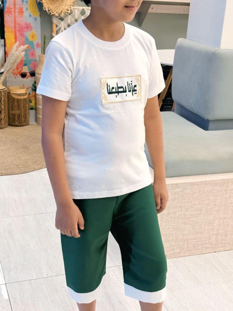 تيشرتات اليوم الوطني بتصميم هوية اليوم الوطني والاسم حسب الطلب رجالي نسائي ولادي بناتي