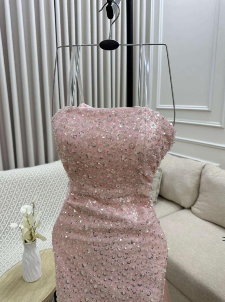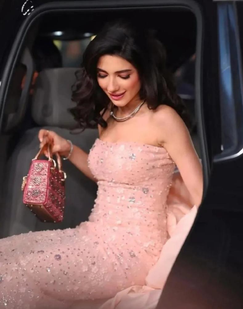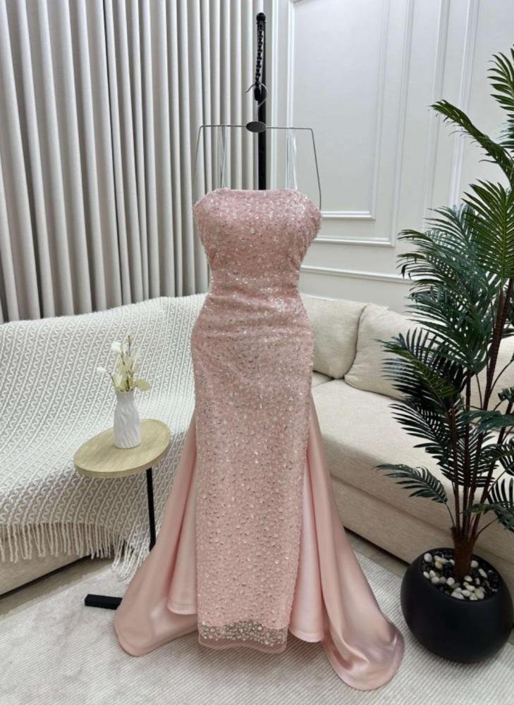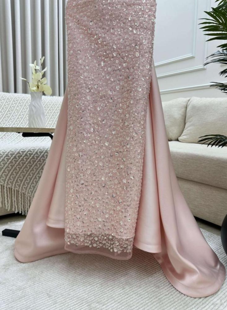 فستان نارين بيوتي فخم بلون وردي فاتح مع ذيل