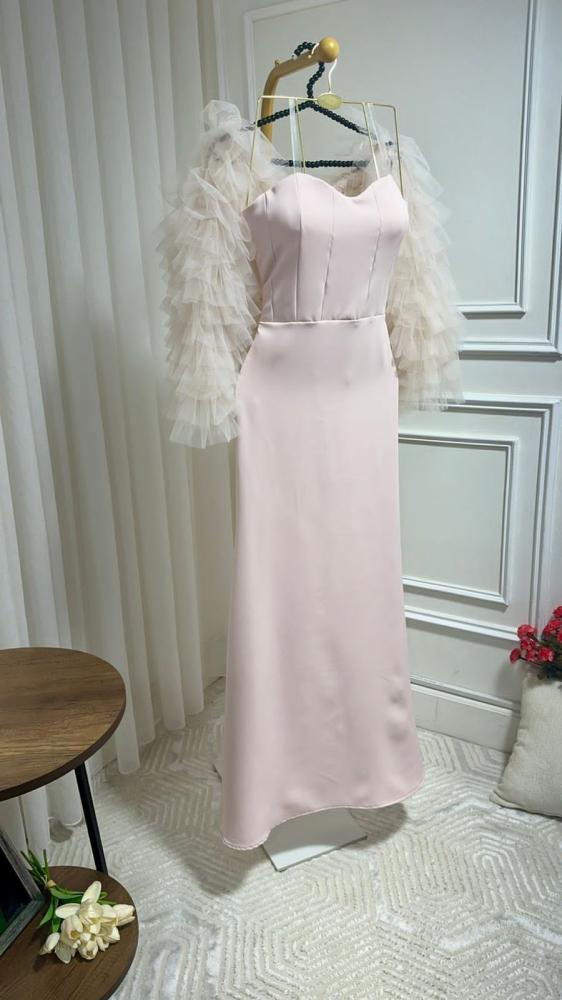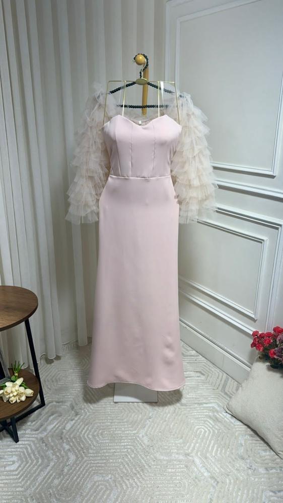 فستان نسائي سهره قماش باربي جاكيت تل مكرمش