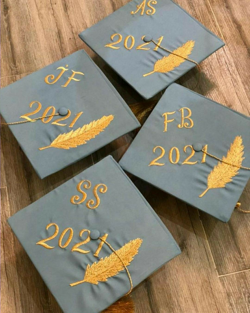 قبعة تخرج كريب بالاسم والعبارة وسنة التخرج وشعار الدفعة
