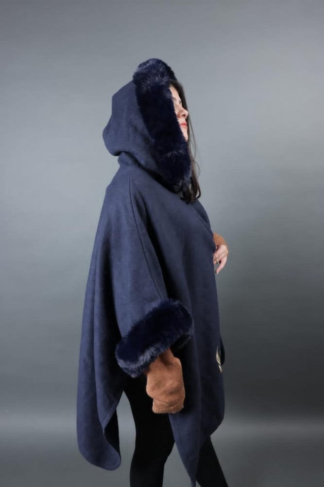 شال شتوي نسائي جوخ مع فرو بالاسم مع طاقية
