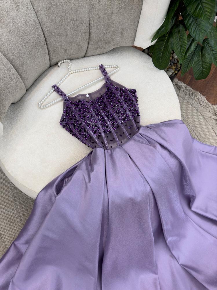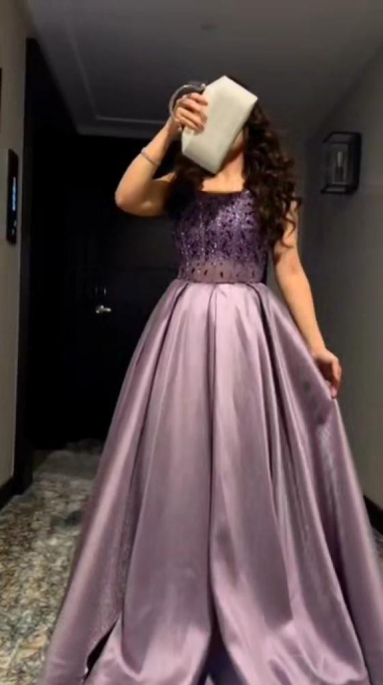 فستان نسائي موف قماش ميكادو ومتوفر قماش روسي