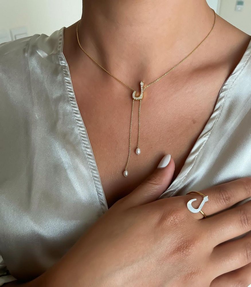 سلسال الحرف المرصع بالزركون مع لؤلؤ بتصميم حسب الطلب