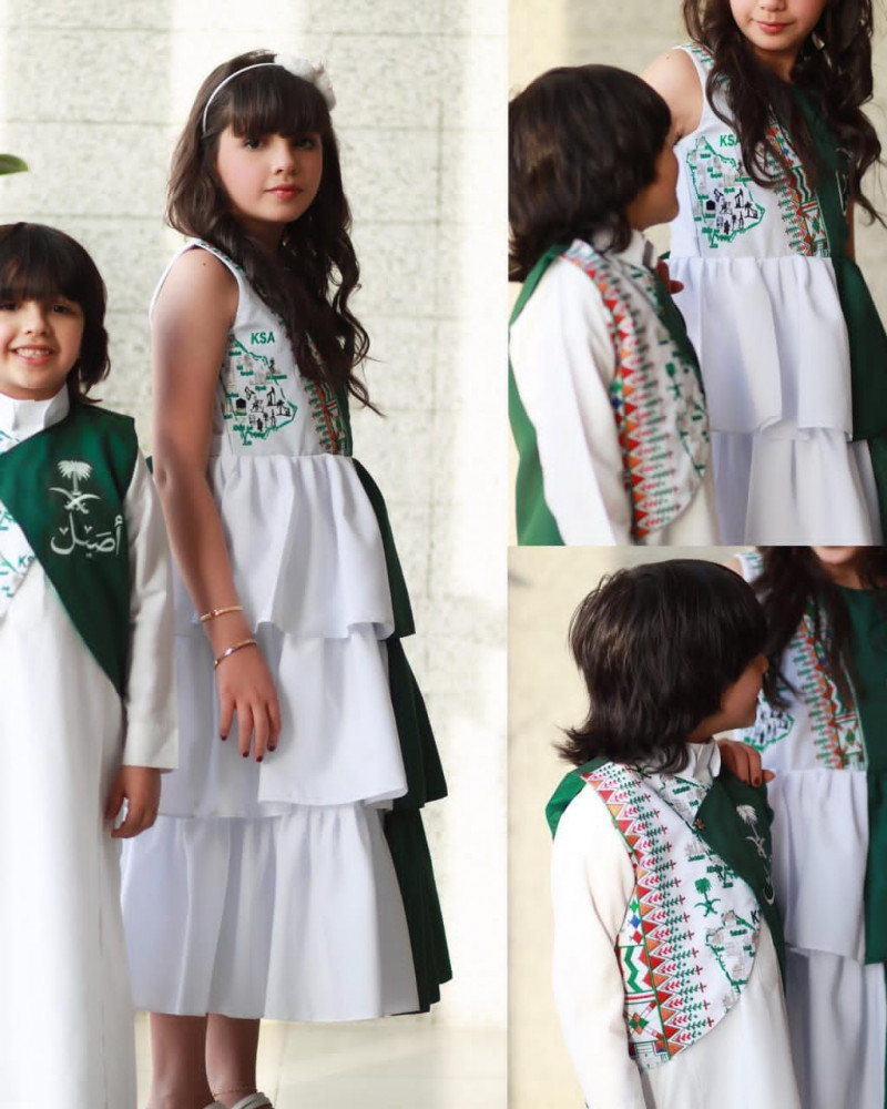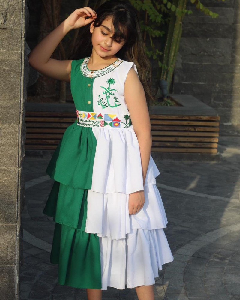 فساتين اليوم الوطني بالاسم و الشعار حسب الطلب