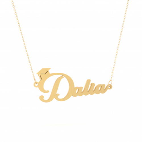 مطلي بالذهب عيار 21 قيراط.يمكنك تخصيص أي اسم أو كلمة (عربي أو إنجليزي).متوفر طلاء ذهبي أو فضي (روديوم).ضمان سنتين على اللون من لافيولا.سمك 0.7 مم.تأتي داخل علبة هدايا بسيطة وكيس عليها شعار لافيولا