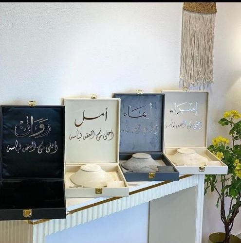 متوفر لون الكتابة باللون الذهبي والفضي والابيض