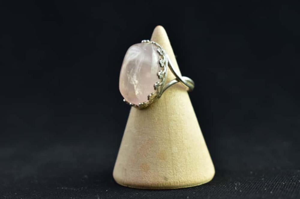 خاتم فضة نسائي مع حجر الروز كوارتز فضه إيطالي خالص عيار٩٢٥